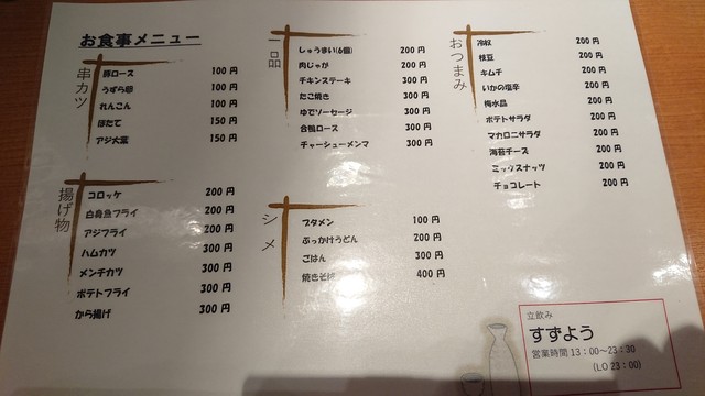 初訪問。キャッシュオンスタイルの立ち飲み屋さん。イス席もあります。中休みなく、13:00オープンというのも素晴らしいです。