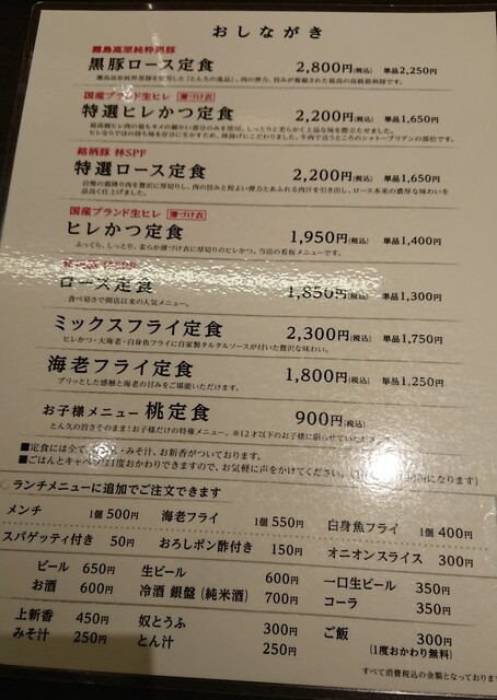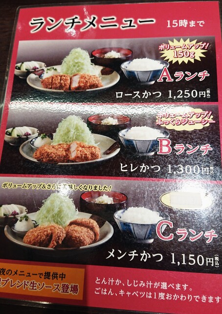 ランチメニューの中からチョイス。なりくらでヒレカツ食べたのでロースカツにします。