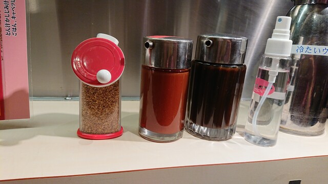 衣は狐色で火はしっかりと通してるタイプ。歯ごたえが肉肉しい。店内の雰囲気もありますが昔ながらのとんかつ屋さんのカツって感じです。このタイプはやはりカラシとソースでしょう。卓上を見るとソースが二種類あります。まずは王道っぽい色のソースを。なるほど、コッテリとんかつソースです。もう1つはケチャップのような色してます。多分卓上ドレッシングにトマトドレがあるのでトマトとソースをブレンドしたのかな?普通のソースよりサラリとしていてコッテリ感も控えめです。個人的にはこの赤いソースの方が好き。