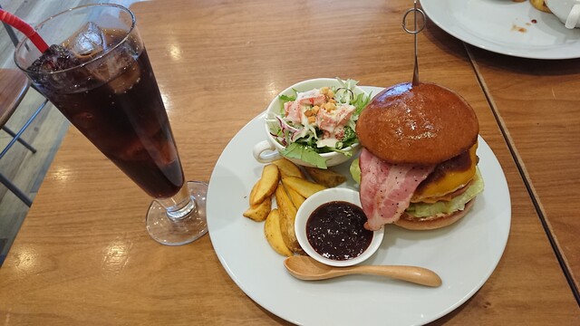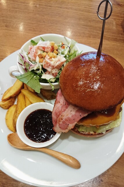 アップルウッドスモークベーコンチーズバーガー サラダ、ポテト、ドリンク付き ¥1375