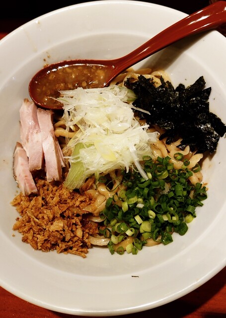 まず麺を食べると細いストレート麺でつるつるとした喉越しの良い食感。コシはややある程度で個人的には少し柔めな印象。