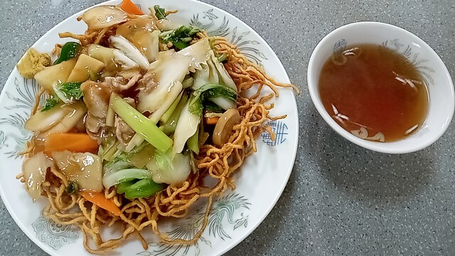 それとスープ。コレは優しい塩梅で文句なしに美味しいです。チャーハンとの相性もいい。