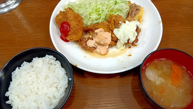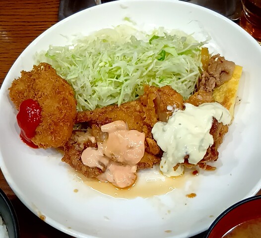 まず味噌󠄀汁。本店と同じように豚肉の切れっ端とキャベツ。本店よりはカットが粗め、ちょっと薄味かな。でも悪くないです。