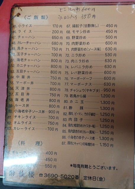 メニューは紙が汚れてる笑