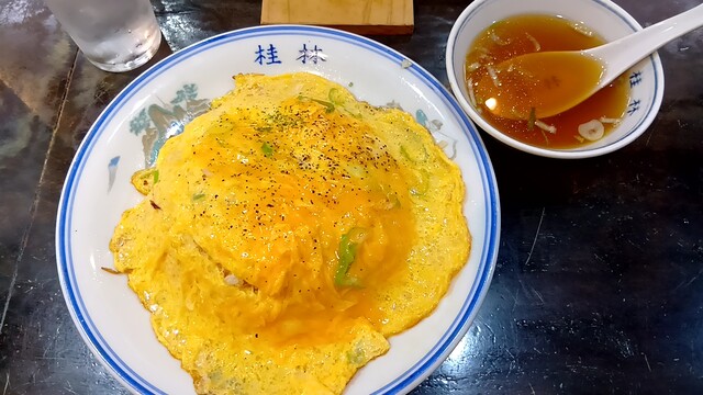 メニューは一応目を通しましたが決まってます。海老チャーハンが有名のようですが、個人的に海老には何の魅力も感じない人間なので海老を抜いた玉子チャーハンに。