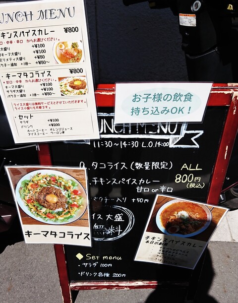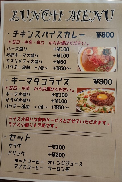 メニューはカレーが四種類。キーマかドライで迷う。でも「こんなドライカレー初めて!」と言う言葉が決めてでコチラに。