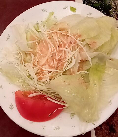 またサラダがクルトンみたいに揚げパスタ細かくしたものが載っていて芸が細かい。