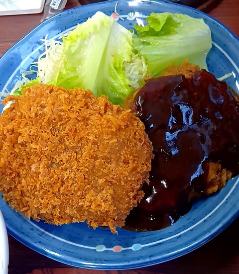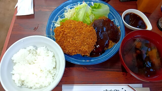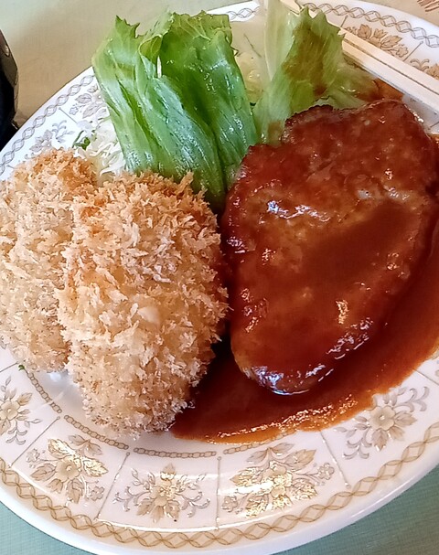 食べたことないハンバーグと生姜焼き両方食べられる盛り合わせにします。