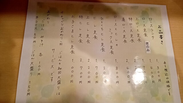 メニューを見るとフライ系メインのタイプ。ポークソテーやハンバーグがありますけどロースカツ、メンチカツから派生した感じがしますね。