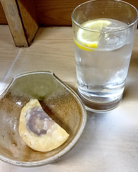 麦水割り¥270 あんことチーズ揚げ¥100