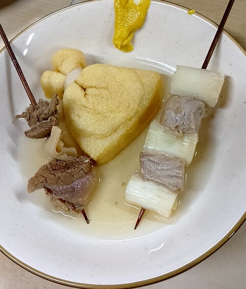 関東風→おでんですが関西だとそう呼ぶんですね。と、言ってもそこまで濃くないしやはり関西寄りな汁かと。もっと濃いめな汁のおでんいくらでもある。おでん自体は美味しいです。あと揚げ餅は餅巾着でした。素揚げした餅なのかと思ってました。色々な呼び方ありますね。