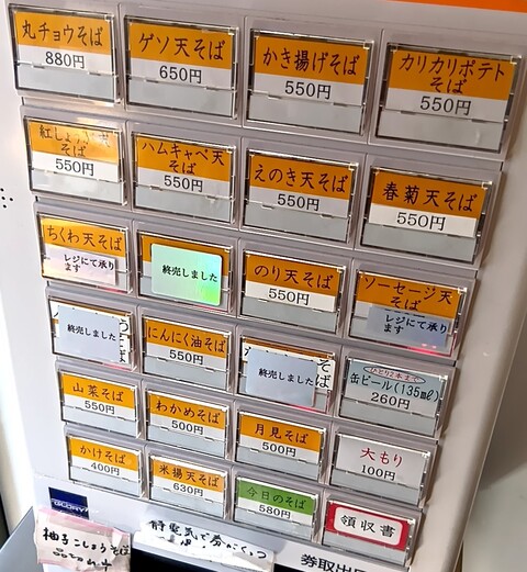 ハムキャベ天そば ¥550 米揚天 ¥230