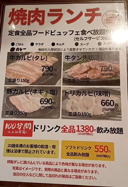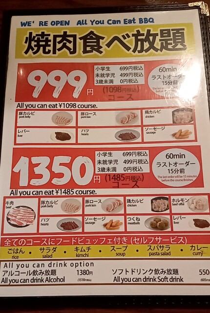 その他スンドゥブや冷麺なんかもありました。韓国系の焼肉をイメージしてるのか。